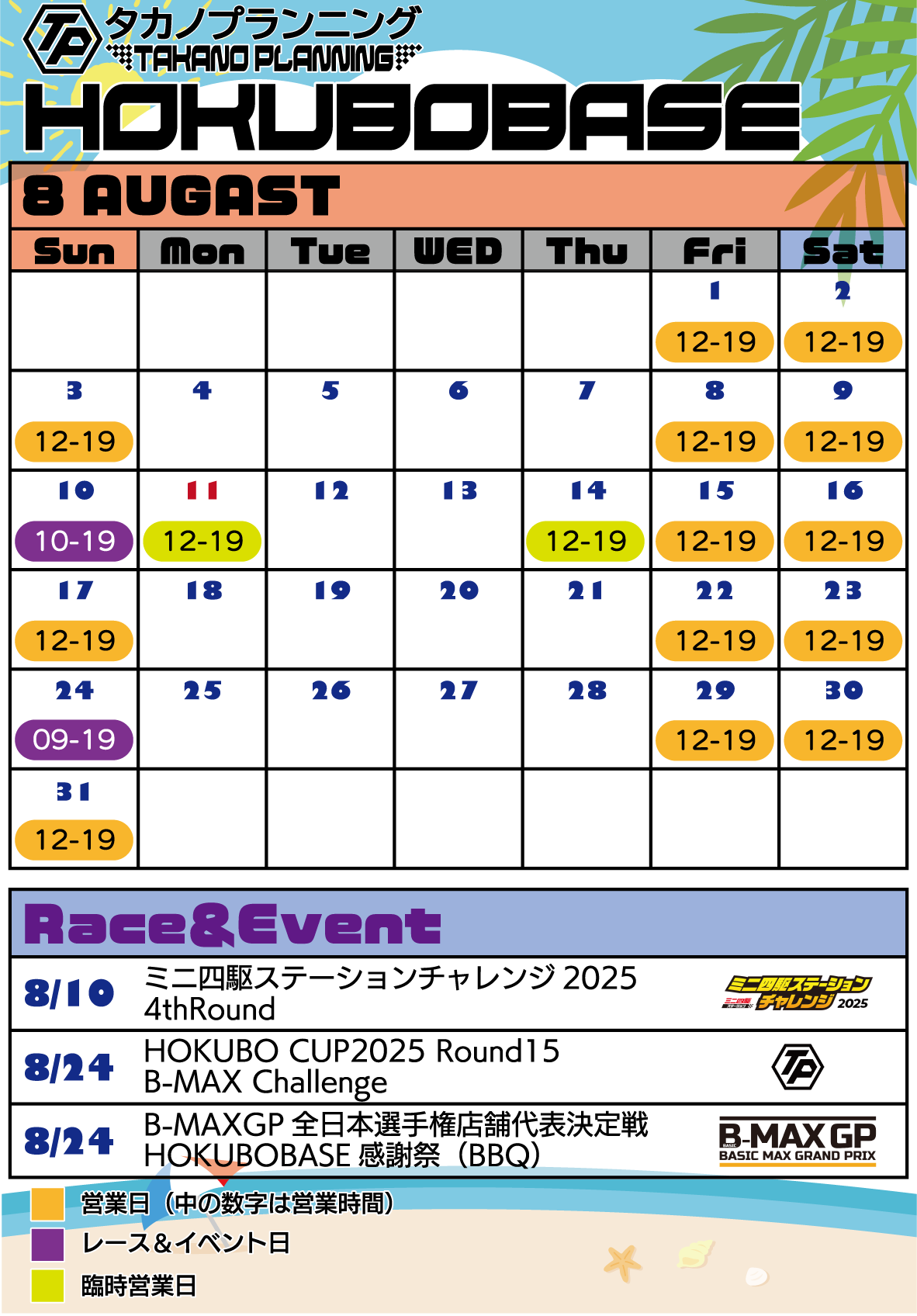 - 2024年7月23日 7月28日HOKUBO CUP2024 Round12 B-MAX Challengeの開催場所を変更しました。